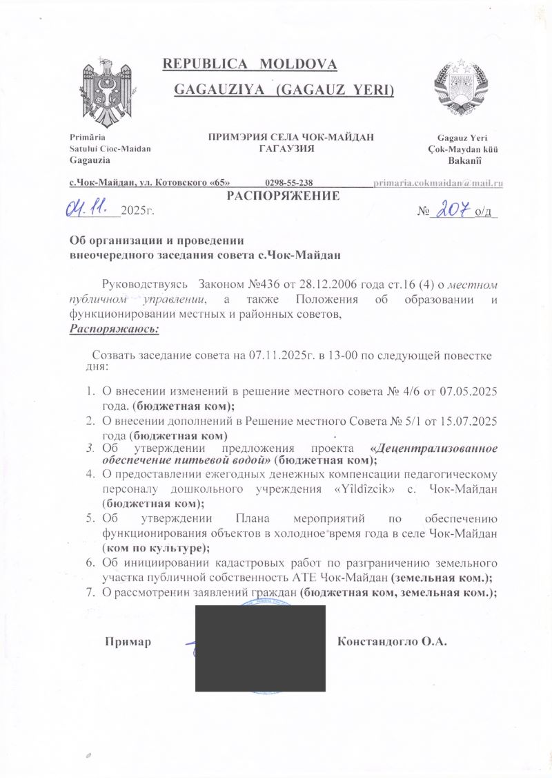 7 ноября 2025 года в 13:00 часов в зале заседаний с.Чок-Майдан проведется внеочередное заседание совета. Данное заседание является открытым.