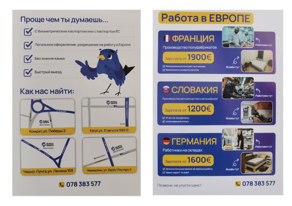 Желающие поехать на работу в Европу,обращайтесь по тел. 078 383 577